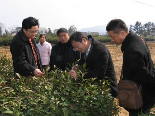 在察看了高桥茶叶试验场茶树受灾现场后,杨亚军所长就如何做好下一步的救灾工作与有关人员进行了交流。杨所长指出,尽管持续的雨雪冰冻,影响了我们当年茶树种质资源的利用试验,但重要的是要着眼于今后的利用,保护好不可多得的种质资源。同时,杨所长要求认真调查记录这次茶树新品种比较试验中受冻害的情况,为今后抗寒茶树品种的选育提供基础数据;另一方面,要尽早安排重新栽植区试中受冻的品种茶苗,确保将冻害对试验的影响降到最低限度。